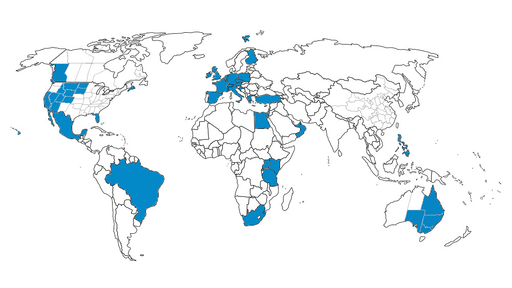 Ägypten, eSwatini, Kenia, Mauritius, Ruanda, Südafrika, Tansania, Uganda
